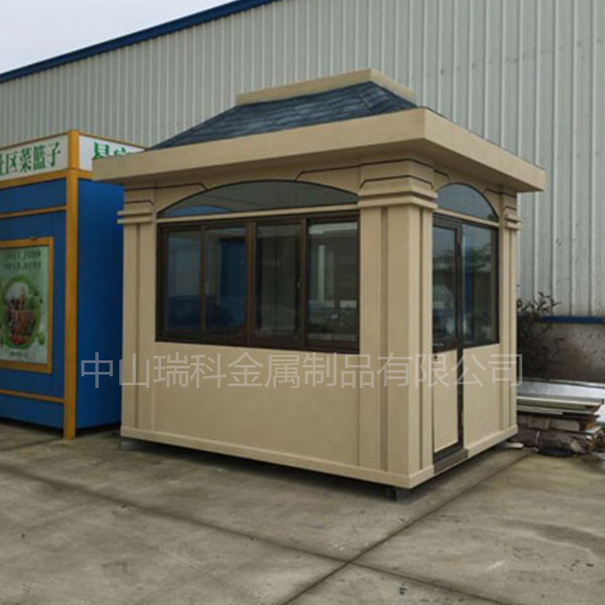 ? 中山瑞科金屬制品有限公司是集設計研發、制作、銷售于一體的私營企業。經多年生產經驗,已自主設計多種鋼結構崗亭,并投入市場使用,我們自2010年入駐中山,從最初的簡易房制作到鋼結構可移動崗亭,經過不斷改良制作,同時也對各項材料進行了試用、從最初的使用壽命二年,到現在的使用壽命15年,由集裝箱到現在的歐款別墅房,在跟上社會發展腳步的同時服務于民,我們將崗亭投放到學校、醫院、公園、工廠、小區、礦廠等地,有效的協助保安、公安來管理社會治安,讓人民有一個安穩的生活環境。